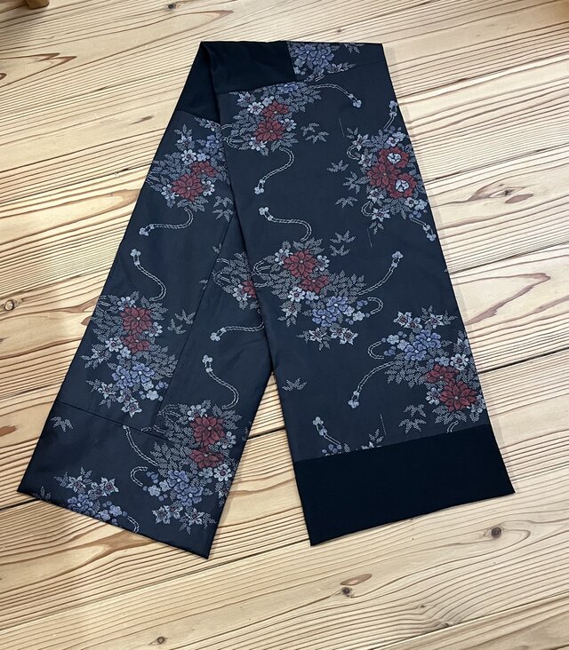 八掛の黒を使ってリバーシブルにお仕立てしています。