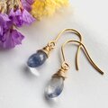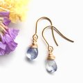 デュモルチェライトインクォーツ ペアシェイプ 1粒ピアス 14kgf