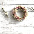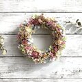 ドライフラワーの帝王貝細工とシャーリーポピーを合わせたパステルカラーのリースです。