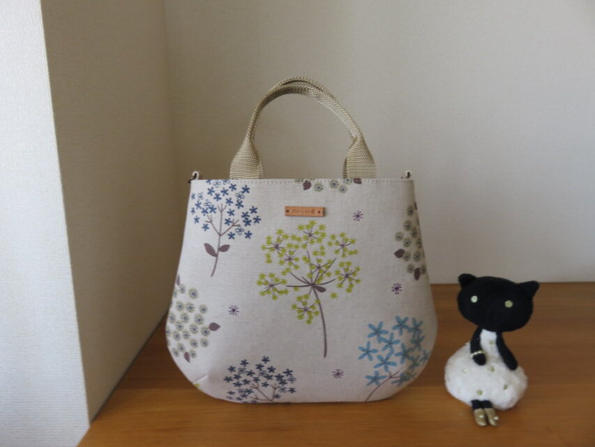 可愛らしい花柄の綿麻生地でおにぎりのようなミニトートバッグを作りました。