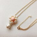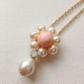 可愛いパステルピンクのヴィンテージビーズを、パールで囲みました。