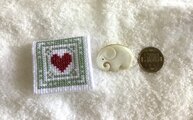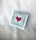 白のクロスステッチ用布地に刺繍を施したアクセサリーケースです。