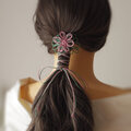 ※先にゴム部で髪をまとめ、垂れている紐部分をその上から巻きつけて使用します。画像を添付していますのでそちらを参照ください。この点についてお問い合わせ頂いてもお答えできません※