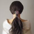 並んだ3輪の飾り結びの花が立体的に髪束を覆うデザイン