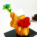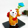 その、一閑張りの技法を生かして張子の招き猫に着物を施してみました。