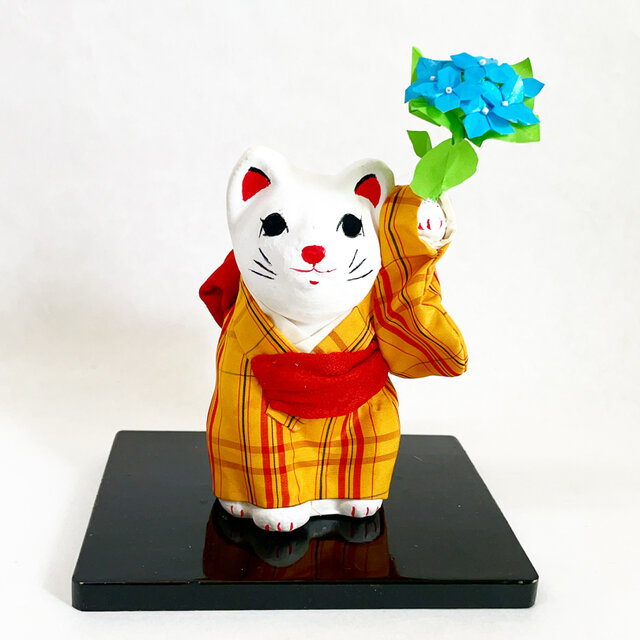 着物の美しい柄が融合して手に取って思わずニヤリとしてしまうような招き猫が仕上がりました。