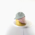 パステルカラーのリネンのキャップ。
