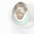 つばの部分は、硬いポリ芯を使用せずキルト芯にしています。折り畳んでバッグに直せます。