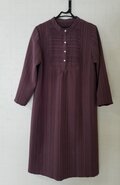小豆紫地の細立縞模様着物(絹)から、ワンピースを作りました。