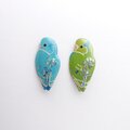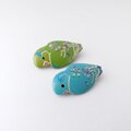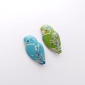 見返りマメルリハインコ桜螺鈿 漆ブローチ