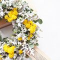 花材:ユーカリ、黄花ローダンセ、ダスティミラー、ナンキンハゼ、デュモサ