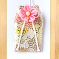 素敵なお守り袋が2つ届きました。 絞りの生地の色合いと大輪の花がとても華やかでキュートです。 白梅のものは、奥ゆかしさと気品を感じました。 どちらも大変気に入りました。大切に使わせていただきます♪