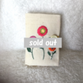 アイボリーの刺繍用布地に丸いお花の刺繍を施した、ブック型ニードルケースです。