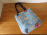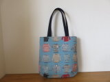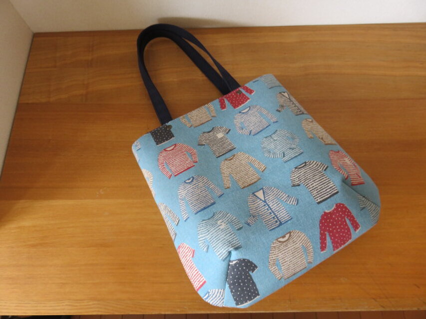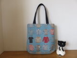 洋服柄の綿麻生地でショルダートートバッグを作りました。