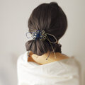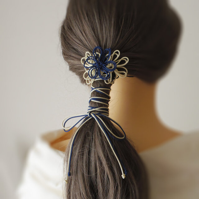 ヘアゴム「色ハ陽ニ冴エ」(濃青×アイボリー)