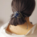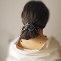 並んだ3輪の飾り結びの花が立体的に髪束を覆うデザイン