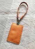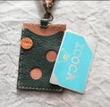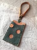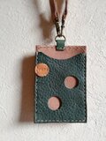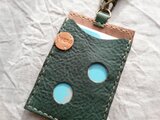 パスケース IDケース レザーストラップ付き グリーン✗キャメル オイルシュリンクレザー