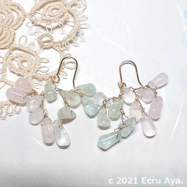 #Ecru #天然石 #ピアス #イヤリング #春 #チタン #ローズクォーツ #アクアマリン #アシンメトリー #Ecru_新作 #Ecru_ピアス