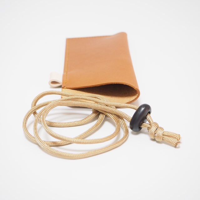 キャンプなどで使われるテント用のパラコード紐の本革めがね入れです。