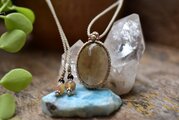 落ち着いた色ながら角度によっていろんな輝きになり、さりげない存在感。どんな服装にも合わせやすそうです。包装も素敵にまとめてくださり、ありがとうございます。また違う石たちにも挑戦してみたいです。