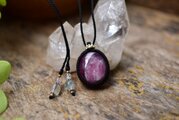 濃く深いルビーの色味の中に映える、天然石ならではのナチュラルな白い模様