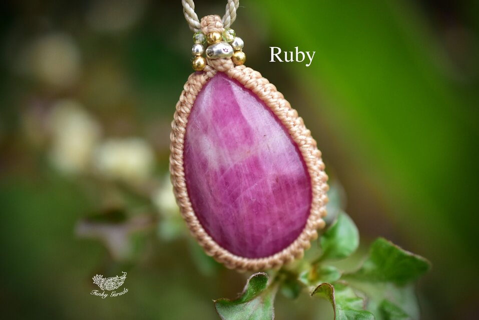 シャープなライン状の白い模様が入った、ピンクルビー