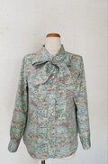 30%off 大島紬リメイク 袖口カフスボウタイブラウス