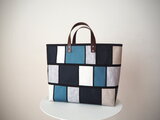 リトアニアリネン パッチワークトートバッグ 「ブルー系×ストライプ」