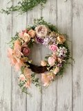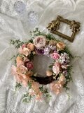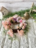 春らしい色合いの優しいリースでお部屋や玄関を明るく華やかにと思いスイトピーとローズのリースを制作しました。