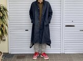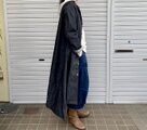 着丈もスリットをいれつつかなり長めに、また前後アシンメトリーにして大幅に生地を取ることで、泥臭さのない独特な洗練された横幅に動きのあるデザインとなっています。