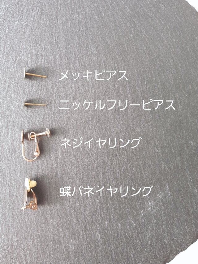 ※ニッケルフリーピアスは平皿・ポスト・キャッチがニッケルフリーで、貼り付けパーツや他の金具はメッキです。