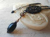 Franceアンティーク Noir-Glass/flower クラシカルネックレス
