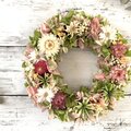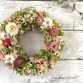 グリーンホワイトのニゲラとピンクの帝王貝細工を合わせた春らしいリースです。