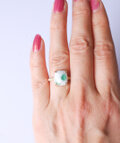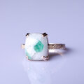 商品画像や説明の通りで、素敵なリングでした。氷ひすいの優しい色と、アームは実は仏さまがいるという、個性的なデザインに惹かれました。また、仕上げの艶消し加工が本当に綺麗です。指にスッと馴染み着け心地も良いです。たいへん気に入りました。大切にします。丁寧なご対応もありがとうございました。