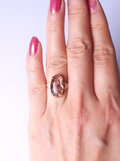 商品画像や説明の通りで、素敵なリングでした。氷ひすいの優しい色と、アームは実は仏さまがいるという、個性的なデザインに惹かれました。また、仕上げの艶消し加工が本当に綺麗です。指にスッと馴染み着け心地も良いです。たいへん気に入りました。大切にします。丁寧なご対応もありがとうございました。