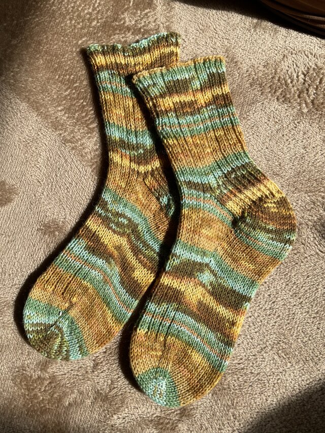 ドイツのOpal糸で一針一針、丁寧に編みました。