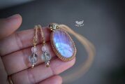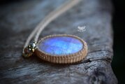 透明感★高品質★レインボームーンストーン シンプルマクラメペンダント135
