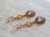 ヴィンテージ、またはアンティークのアイリスGlassを用いてお作りしましたピアスです。ピアス金具のみ14Kgf素材。その他の金具類は真鍮製です。