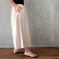 オーガニック素材で、ふんわりした質感が肌に心地良いワイドパンツ。