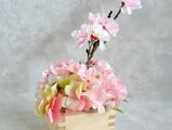 ヒノキの枡の香りに癒される 春桜のアレンジメント
