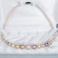 14mmの大粒の本真珠(淡水パール)を中心にしたグラデーション・ネックレスです。どのサイズも美しい照りが見られます。クラスプは高級感があり、輝きも綺麗なSV925製(ロジウムメッキ)を使っています。