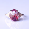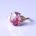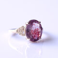 アメジストの紫とクリアのグラデーションが美しい水晶の内部に赤くて透明感のある様々なカタチのインクルージョンが美しく散らばるアメジストエレスチャル。