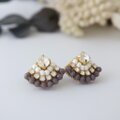 上品かわいい扇形ビーズ刺繍のピアス(グレー)/プレゼントにも