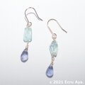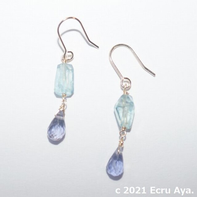 素材:ピアスパーツ チタン、宝石質アクアマリンAAA タンブルカット、宝石質アイオライトAAA ドロップブリオレットカット、その他14kgf
