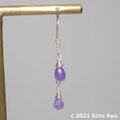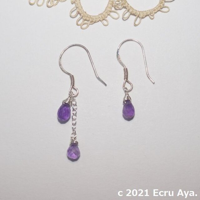一粒の方のアメジストの大きさは、6x4mmのドロップブリオレットカットなのですが、細かなカットの輝きがお顔の横で美しく揺れ動きます。