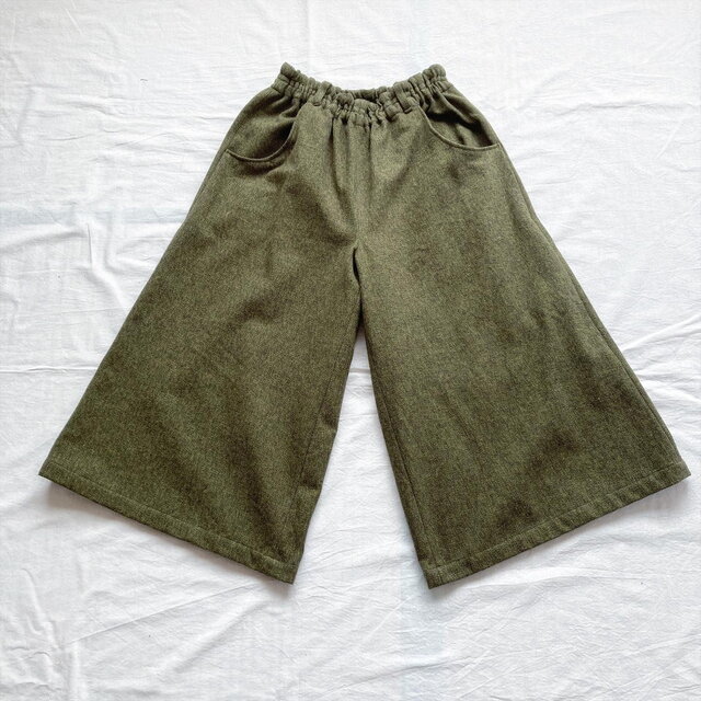 ハンサムスタイルのロングキュロット:80cm(コットンツイード:オリーブ)