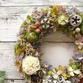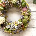 青リンゴとソーラーシフォンカーネーション、そして木ノ実を使った可愛らしいリースです。