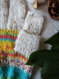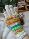 綺麗なキャンディカラーの、手編みのスマホ操作対応5本指手袋です。