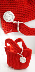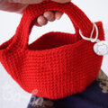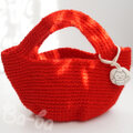 真っ赤なウール100%毛糸を、かわいいバッグに編み上げました。