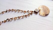 ナチュラルテイストなウッドとストーンのフリーサイズネックレス Y-1493